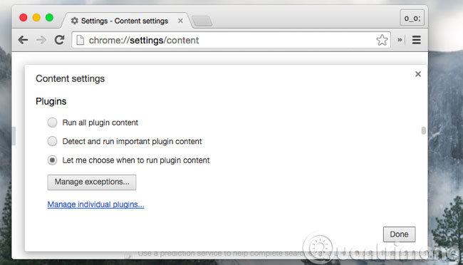 Hãy kích hoạt tuỳ chọn Click to play trên trình duyệt của bạn, nó sẽ làm trang web tải nhanh hơn đồng thời tiết kiệm được chu kỳ hoạt động của CPU và năng lượng pin. Nó cũng có tác dụng bảo vệ quan trọng. Những kẻ tấn công sẽ không thể khai thác được những lỗ hổng của phần bổ trợ chạy nền trên trình duyệt vì bạn chỉ cho phép chúng tải khi cần thiết.
