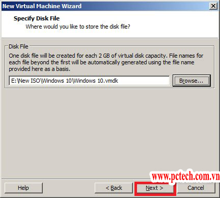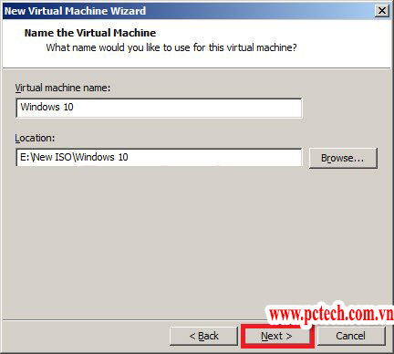 Bấm Next, đến phần đặt tên cho máy ảo, thư mục lưu trữ file cài đặt. Các bạn thay đổi theo ý muốn.