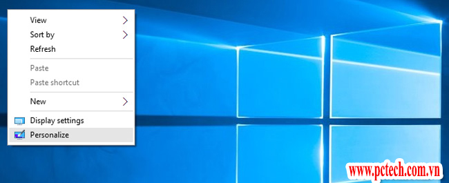 Để cho hiện icon My Computer trên Desktop, trước tiên các bạn hãy nhấn chuột phải vào màn hình Desktop trống, chọn Personalize: