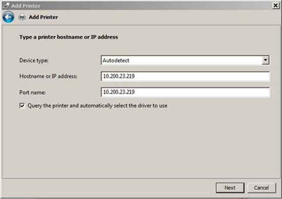 Nếu gặp may mắn, việc lựa chọn máy in theo cách này sẽ cho phép bạn truy cập được. Nếu không thể kết nối hoặc tên của máy in vẫn bị ẩn, bạn có thể thử lựa chọn cuối cùng“Add a printer using a TCP/IP or hostname” (thêm máy in sử dụng giao thức TCP/IP hoặc tên máy). Lúc này bạn cần phải có địa chỉ IP tĩnh của máy in. Để lấy địa chỉ IP tĩnh của máy in, bạn có thể vào Control Panel -> Printers, nhấn chuột phải vào biểu tượng máy in cần xem, chọn Printer Properties và chọn thẻ Ports, xác định tên máy in cần lấy địa chỉ, bạn sẽ thấy địa chỉ IP (hình trên). Sau đó quay trở lại máy tính và gõ địa chỉ IP trong mục Hostname hoặc IP Address và nó sẽ tự động xuất hiện trong trường Port name(hình dưới). Nhấn Next và để nó tự động kết nối.