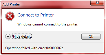 Lỗi Windows cannot connect to printer: