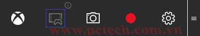 Bước 2: Hộp thoại Game Bar xuất hiện với các biểu tượng thao tác nhanh như mở ứng dụng Xbox, kiểm soát tiến trình ghi âm, chụp ảnh, quay video màn hình game đang chơi và cài đặt.