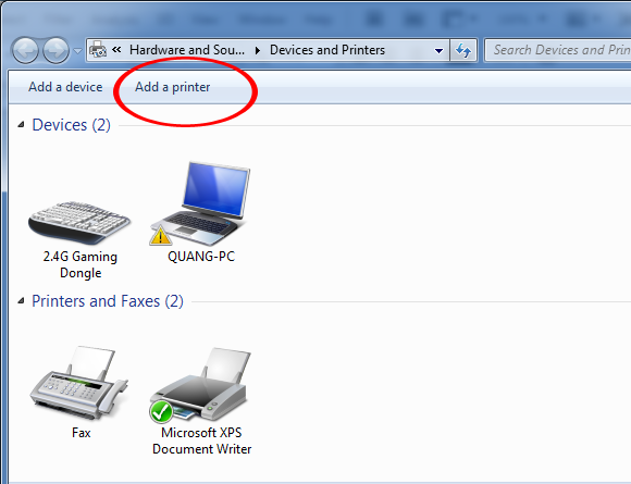 Kết nối máy in mạng LAN