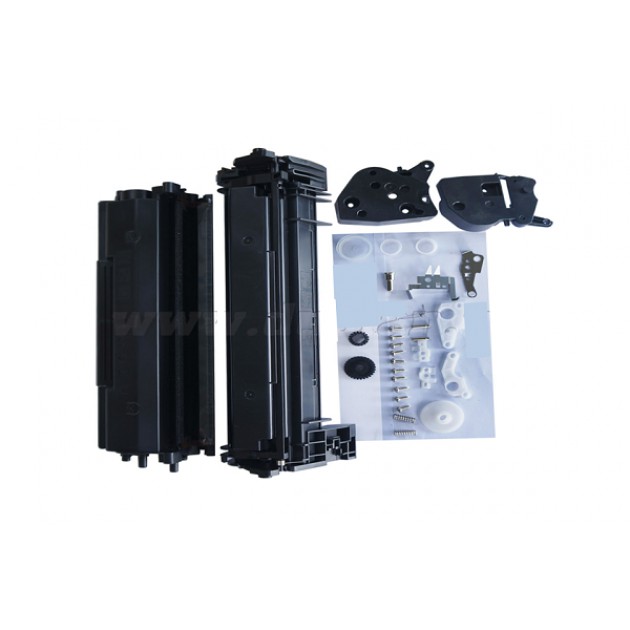 Đây là toàn bộ linh kiện của 1 hộp mực ( tùy loại model của máy in thì linh kiện của hộp mực sẽ khác).Nếu 1 trong các bộ phận của hộp mực bị hư hỏng hoặc có dấu hiệu hư hỏng,sẽ dẫn đến bản in của các bạn bị lem đen.
